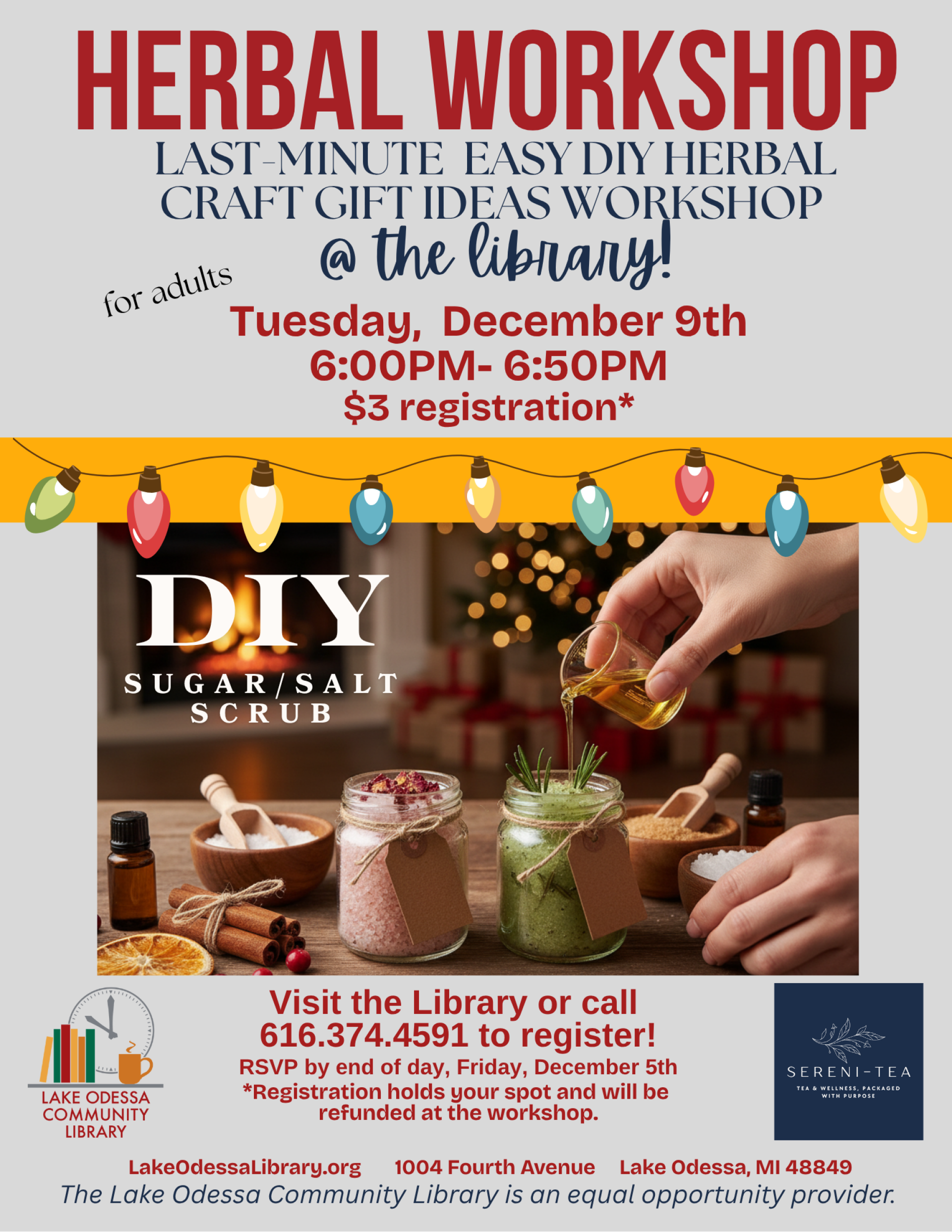 WHERE: Lake Odessa Community Library /1007 4th Ave, Lake Odessa MI 48849